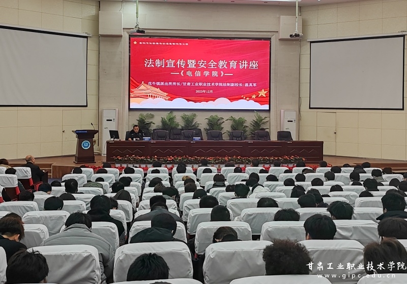 为进一步增强学生安全意识,帮助学生掌握基本的法律常识和安全知识,切实筑牢保障学生身心健康发展的安全防线,助力平安校园建设。12月14日,电信学院邀请天水市花牛镇派出所所长、甘肃工业职业技术学院法制副校长温真军在智敏学术报告厅开展法制安全教育讲座。电信学院师生参加。