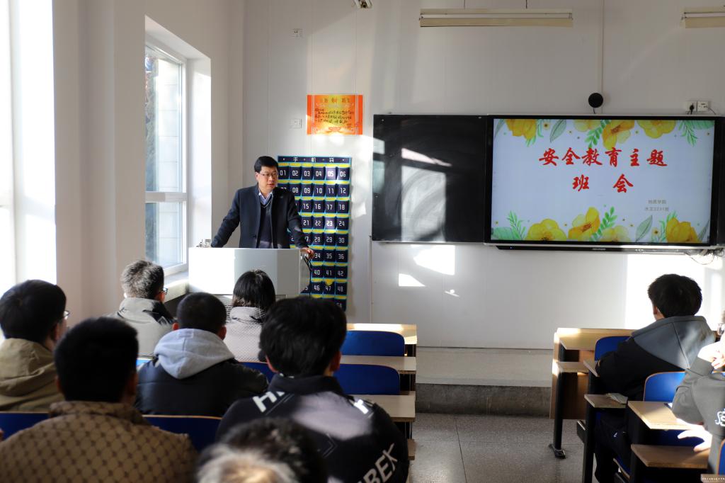 为切实增强学生安全防范意识,保障学生安全,11月23日,副院长曹惠清深入地质学院联系班级水文2231班召开安全教育主题班会。地质学院相关负责人及学生管理相关人员参加。
